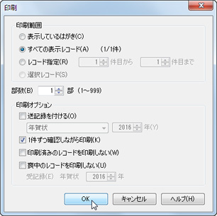 [部数(B)]に印刷部数を入力し、[OK]ボタンをクリックします。 | ||||||||||||||||||