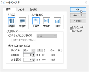 [縦書き]または[横書き]ボタンをクリックし、[文章枠を追加]ボタンをクリックします。![]() |