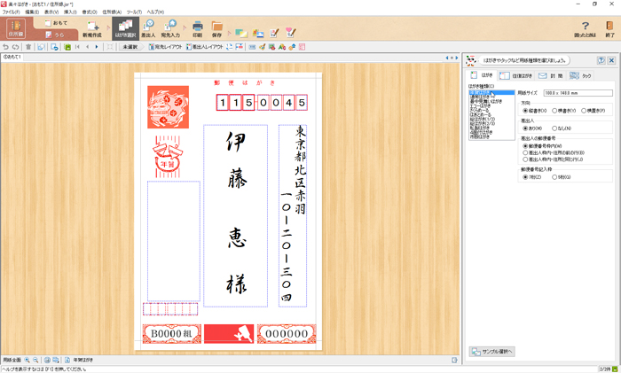 [はがき種類(C)]から「年賀はがき」を選択します。 ※用途に応じて選択してください。 ![]() |
