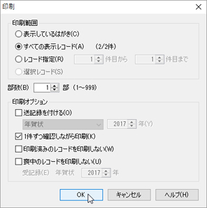 [部数(B)]に印刷部数を入力し、[OK]ボタンをクリックします。 | ||||||||||||||||||