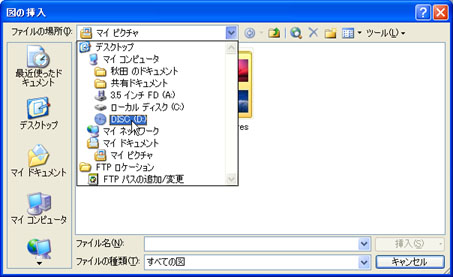 [挿入(I)]→[図(P)]→[ファイルから(F)]を選択します。 | ||||||||||||||||