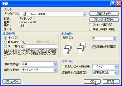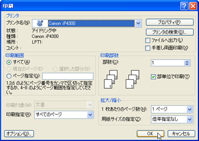 [プリンタ名(N)]でプリンタを選択し、[OK]ボタンをクリックします。![]() |