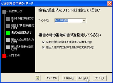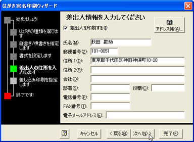 差出人情報を入力し、[次へ(N)>]ボタンをクリックします。![]() |