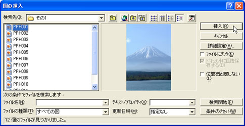 目的の画像を選択し、[挿入(R)]ボタンをクリックします。![]() |