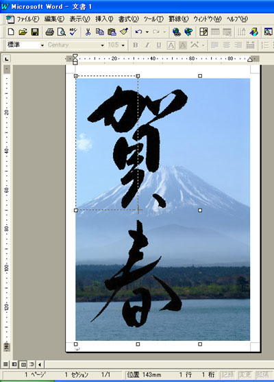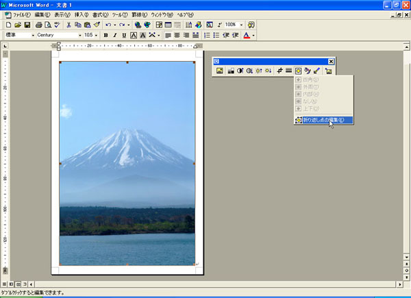 さらに画像を追加する場合は、下になる画像を選択し、「図」ツールバーの[テキストの折り返し]ボタンから[折り返し点の編集(E)]を選択します。その後(2)〜(5)の操作と同様にして、目的の画像を貼り付けます。![]() |
