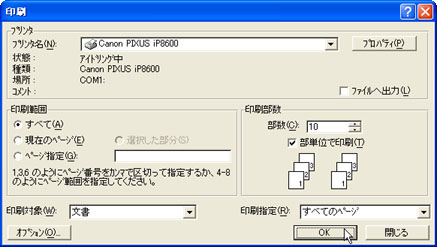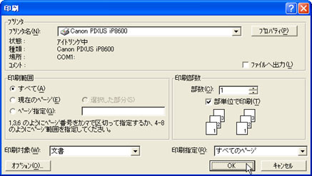 [プリンタ名(N)]でプリンタを選択し、[OK]ボタンをクリックします。![]() |