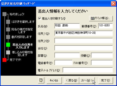 差出人情報を入力し、[次へ(N)>]ボタンをクリックします。![]() |
